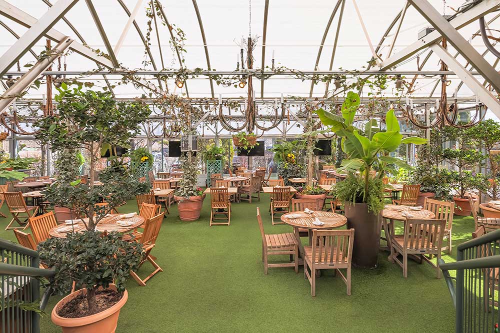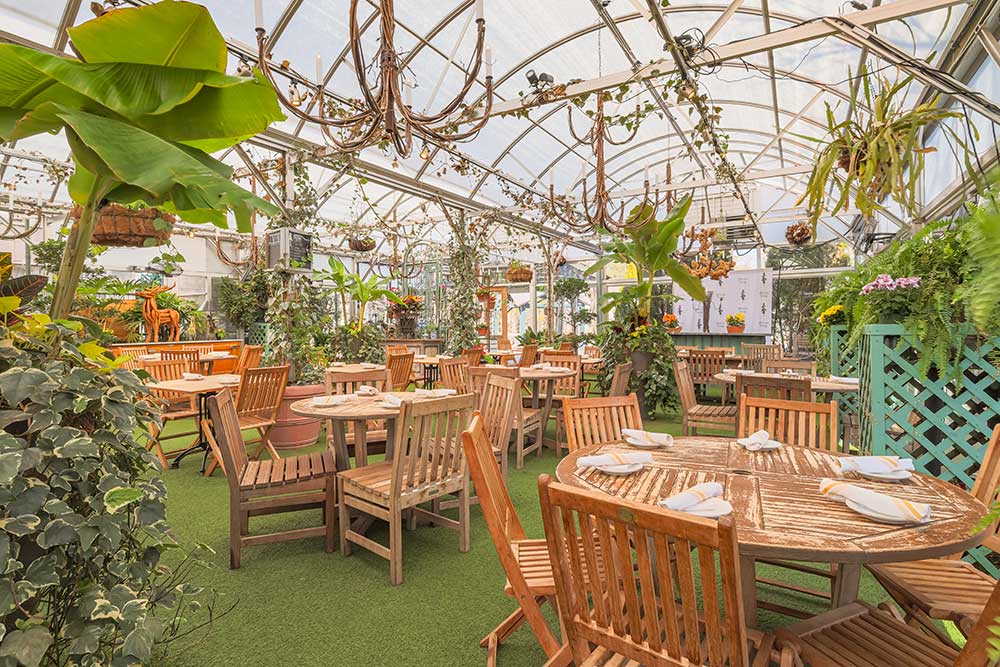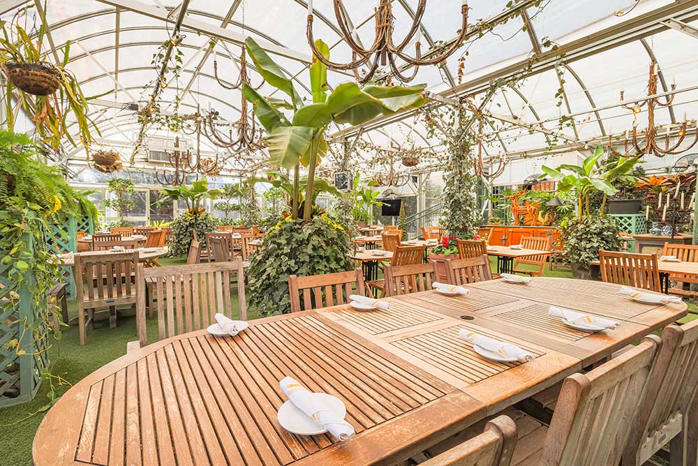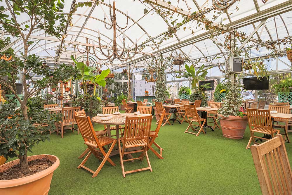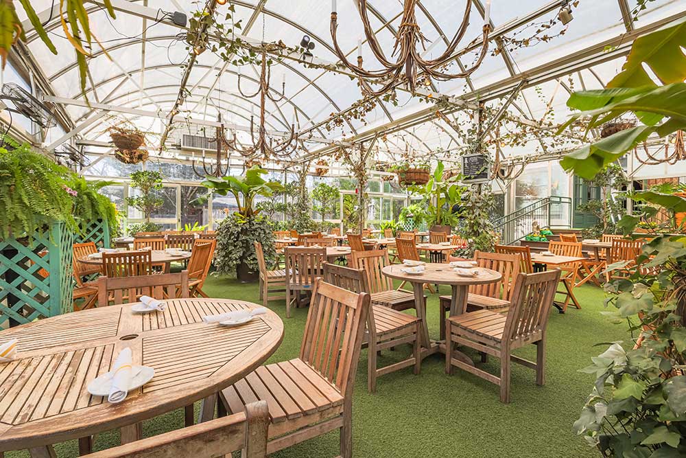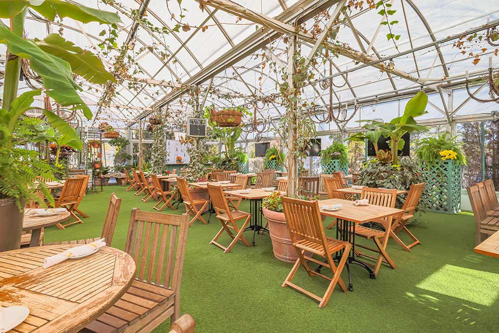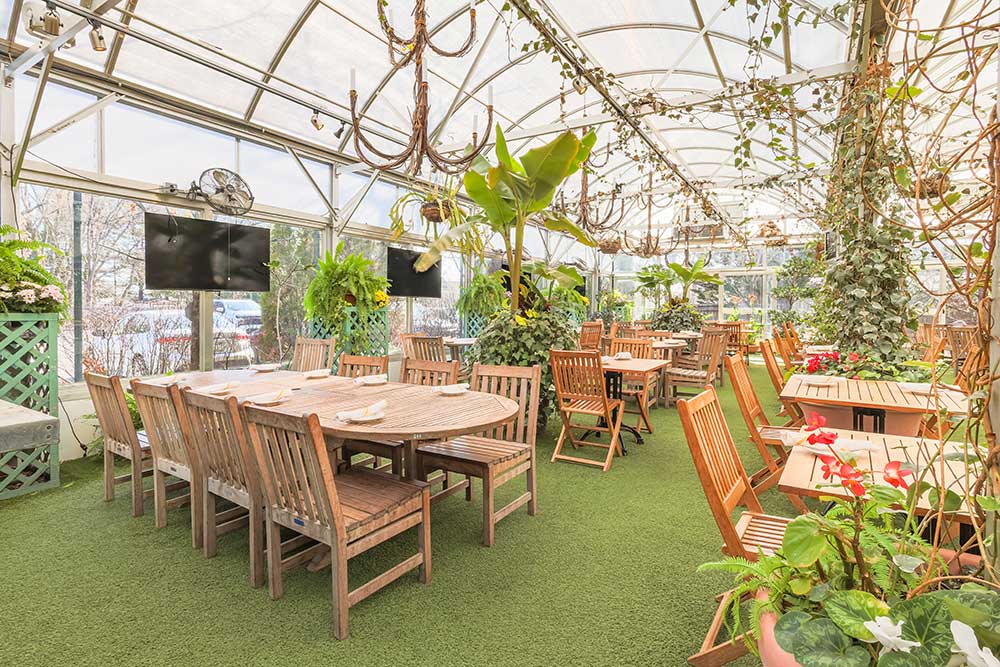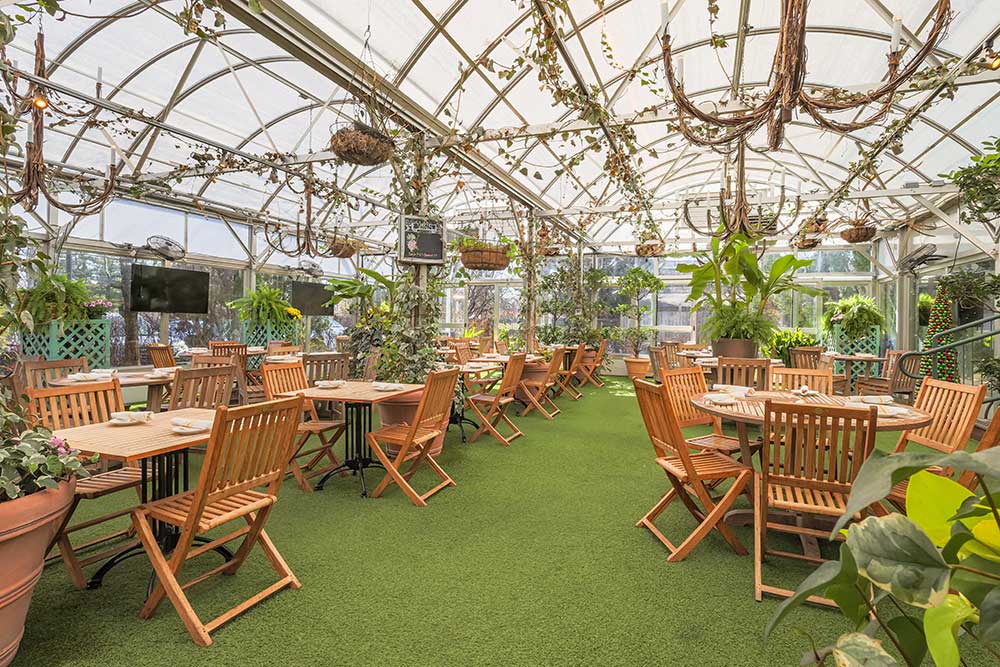 Our latest addition to the Pineville Tavern is our Garden Greenhouse. Featuring floor to ceiling windows, exotic, lush trees and plants, four synchronized vents that open when the top of the greenhouse reaches 80 degrees, and two heaters that regulate the temperature to 50 degrees at night and 70 degrees during the day, the greenhouse is optimized to be an ideal outdoor dining and event space. The maximum occupancy for this space is 100 people. A minimum food and beverage total of $6,000 is required to rent this space. For the Garden Greenhouse, all food and drink menus are custom and catered to your needs and dietary restrictions.
